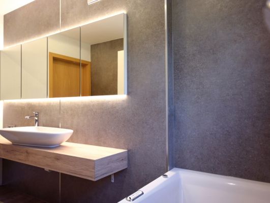 Badezimmer mit Effektputz-Platten