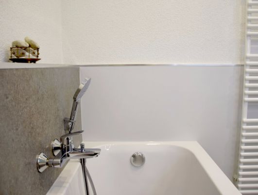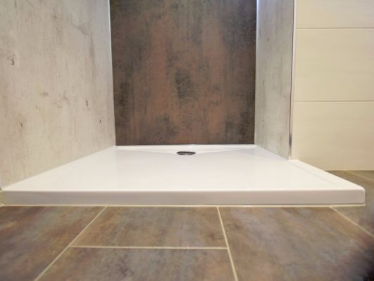 Tausch Badewanne gegen Dusche mit Effektputz-Platten