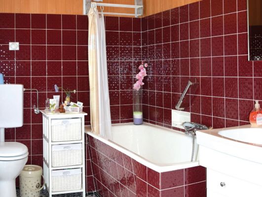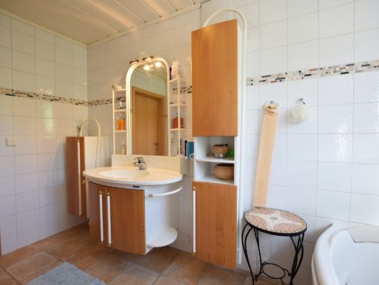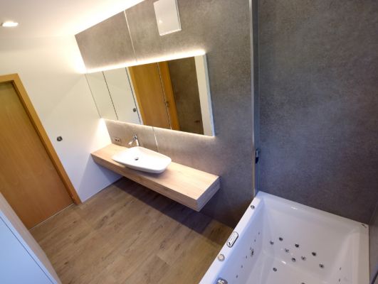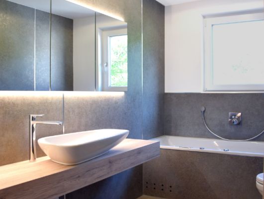 Badezimmer mit Effektputz-Platten