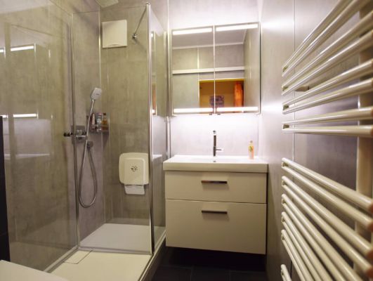 Altersgerechte Sanierung des Badezimmers. Die hohe Badewanne wurde gegen eine flache Dusche getauscht, die vollständige Sanierung erfolgte innerhalb von drei Werktagen.Bilder: vorher-nachher