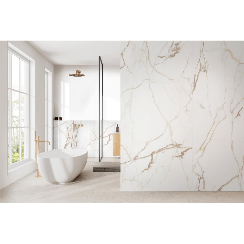 SPA Multiboard 4 mm,Höhe 280 cm, Breite123 cm, Dekor Calacatta Gold, Oberfläche Steinstruktur